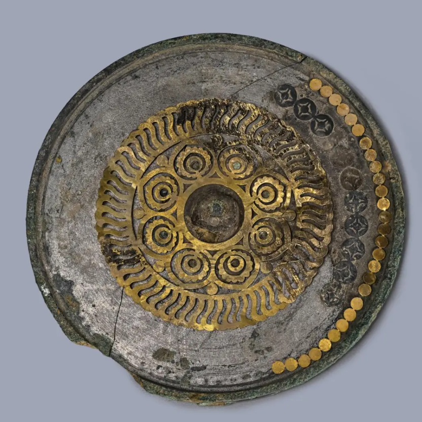 董韶容墓出土的金銀平脫鏡。來源/陜西省考古研究院